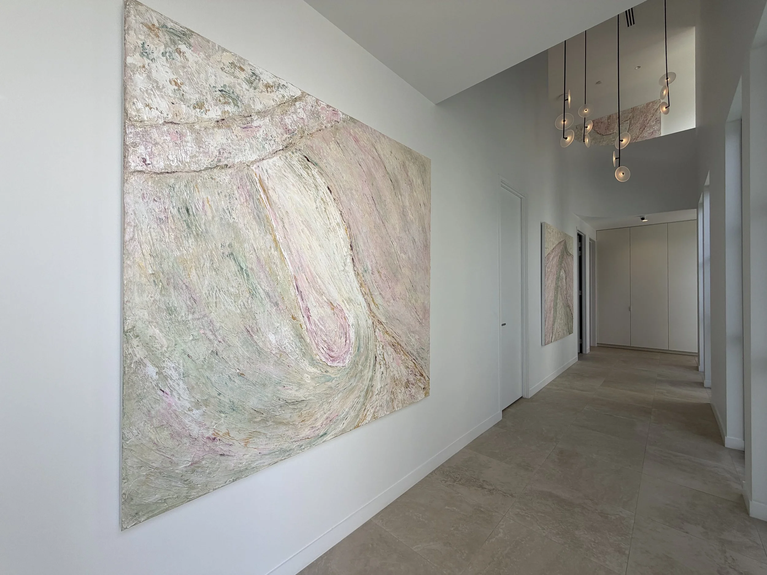 Through a process of creative exchange, my sculptural, emotive paintings are integrated into Mark’s meticulously crafted interiors, resulting in environments that are deeply personal, immersive and visually arresting. What emerges is a seamless fusion of art and design as living architecture, a place where intuitive artistic expression and timeless craftsmanship meet to transform interiors into sensory, contemplative works of art.