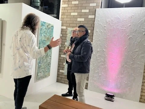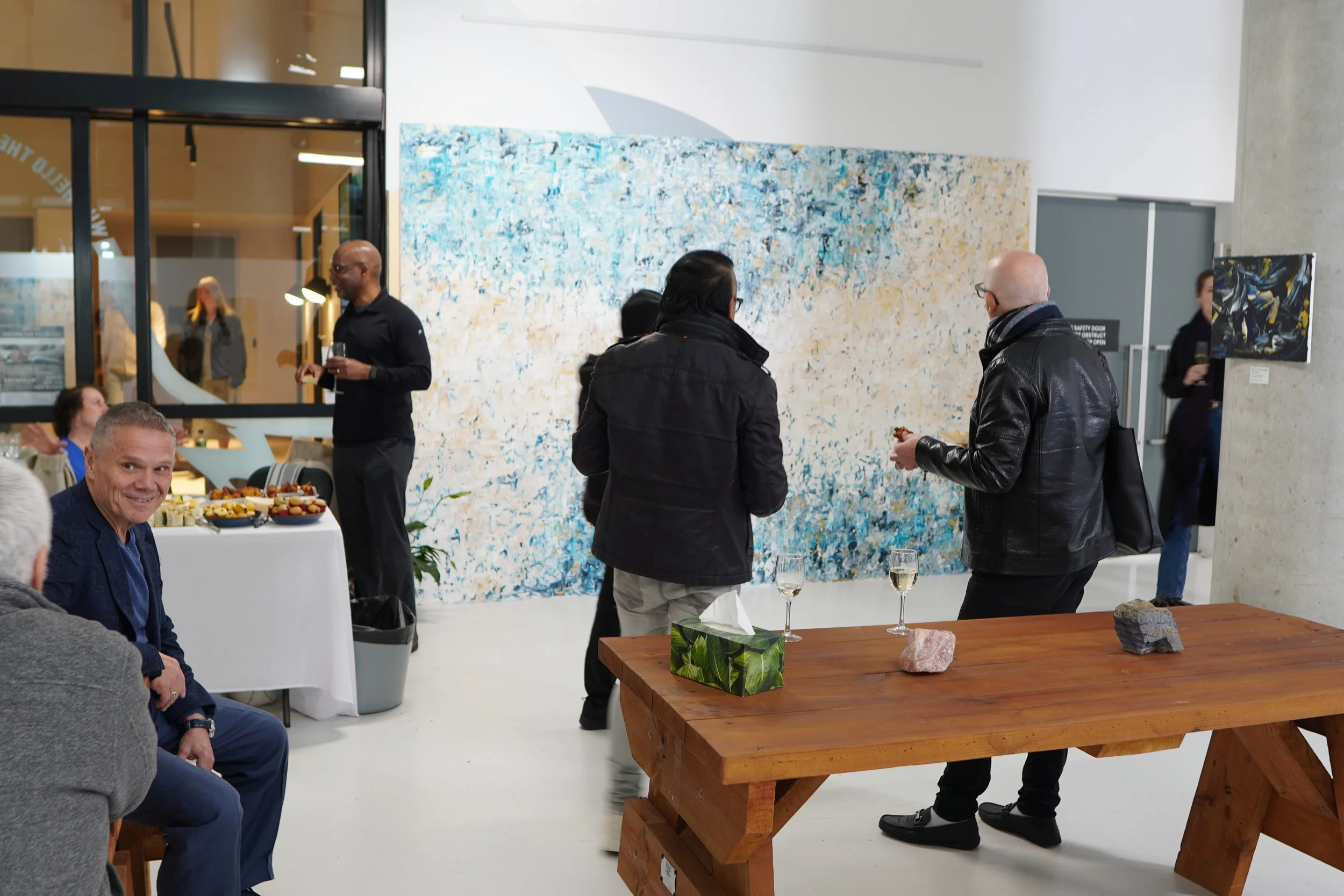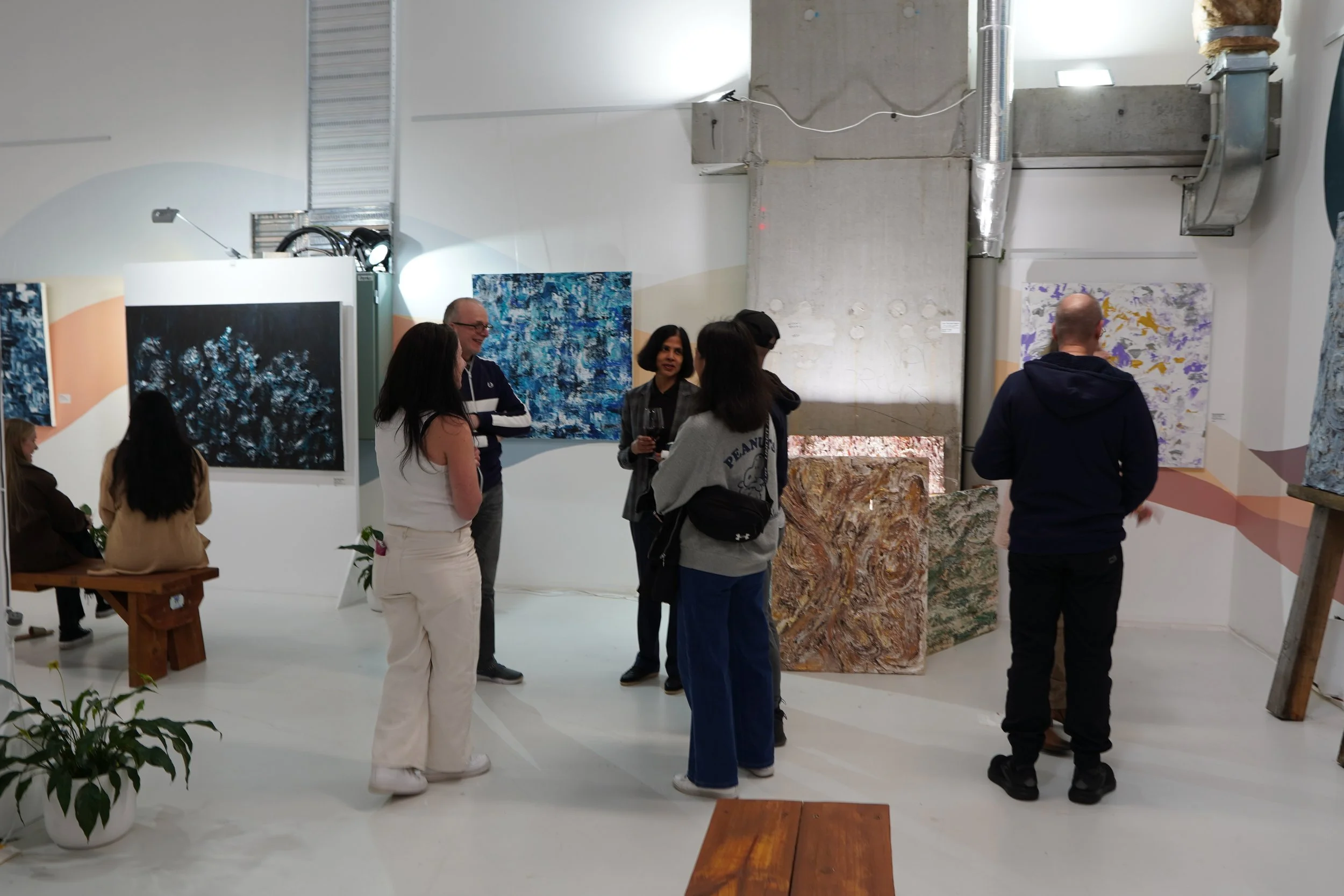 My mum and dad prepare the food for our exhibition openings. My father, now a retired chef, treats food like the art his spreads are. My mum has perfected the art of Italian donuts, sfingi. My cousin Joey, always impressively dressed to match the theme of each show, welcomes guests with warmth and flair. He’s theatrical and joyful, and it fills me with a smile every time he walks through the door. My brother Joseph, thoughtful, incredibly intelligent and generous, is a continuous source of valuable advice, has a piece in the Winter exhibition, from taking our painting workshops.