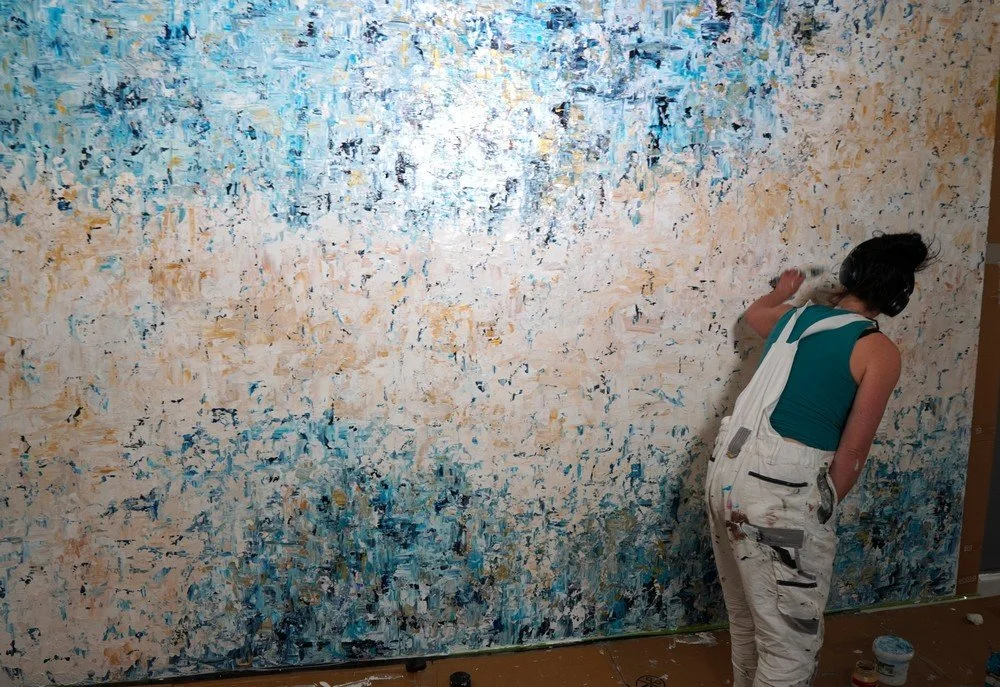 The current exhibition at Romulus Folio Gallery, titled Winter, draws directly from how they built things: with whatever was at hand. Pieces included are created from upcycled shipping pallets and removable interior walls, reflecting both practicality and transformation. While they built homes, I build with paint, memory, and gesture.