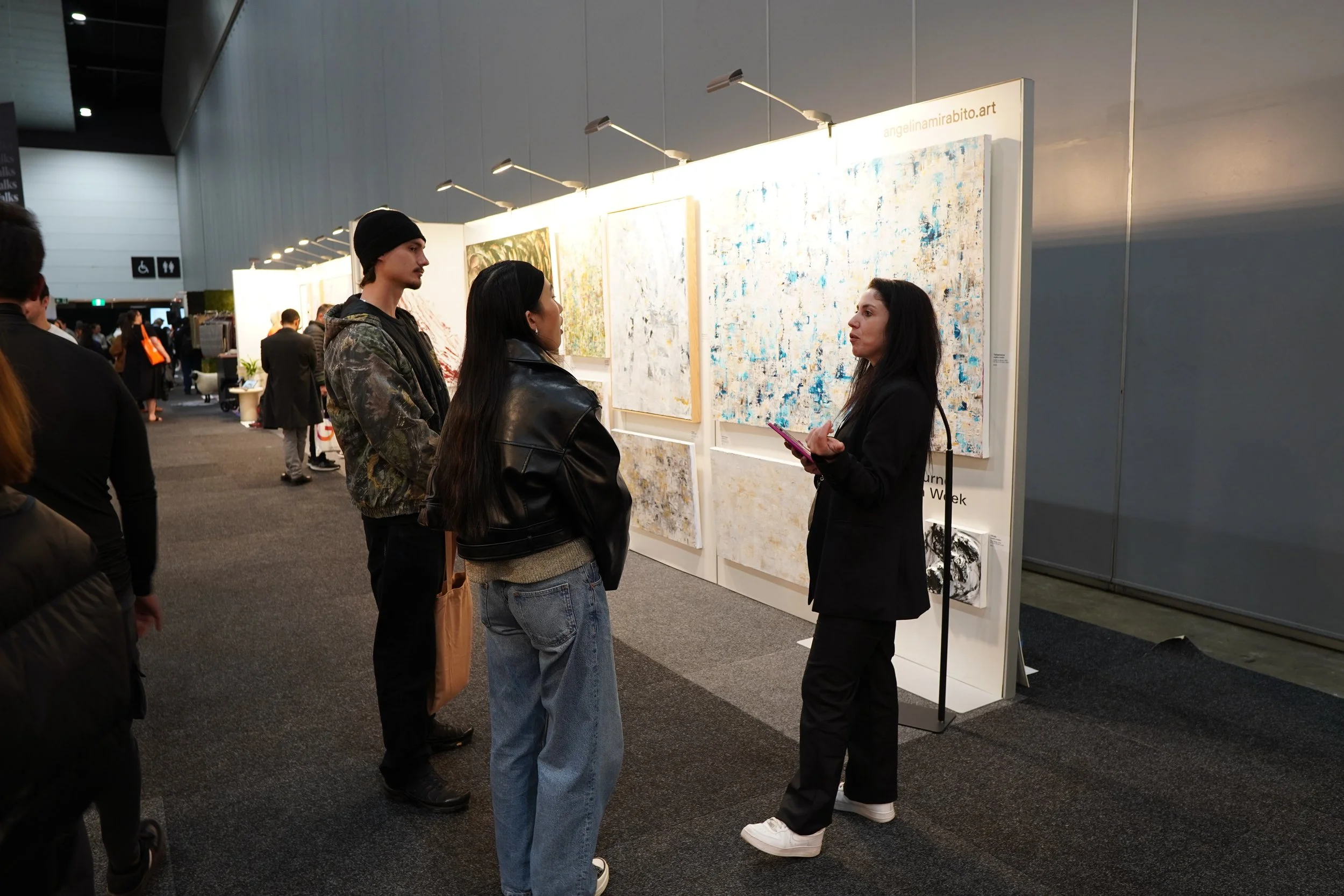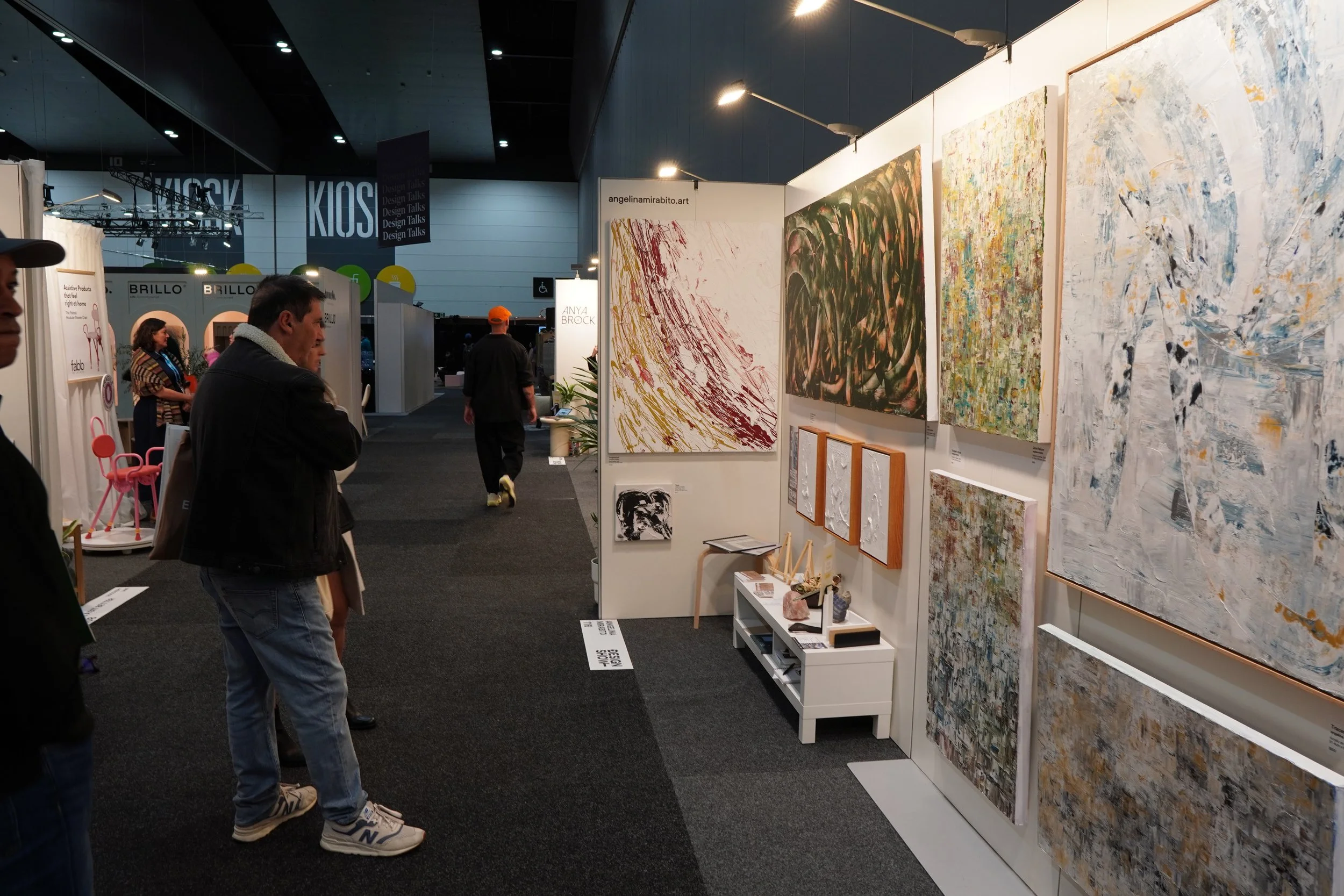 Choosing which works to exhibit and curating became a creative act in itself. I focused on pieces that felt aligned with the design-focused atmosphere of the show, rather than simply showcasing what I loved most. Curating this way felt like a conversation, listening to the context and then responding through material and form. I learned a lot on how to do this from participating in the Melbourne Design Week NGV in may with an Exhibition and Talk on the Art of Surface and workshop. It led to many discussions with interior designers, architects and property developers that expanded the way I perceive the various meaningful roles art can play in how we experience space.