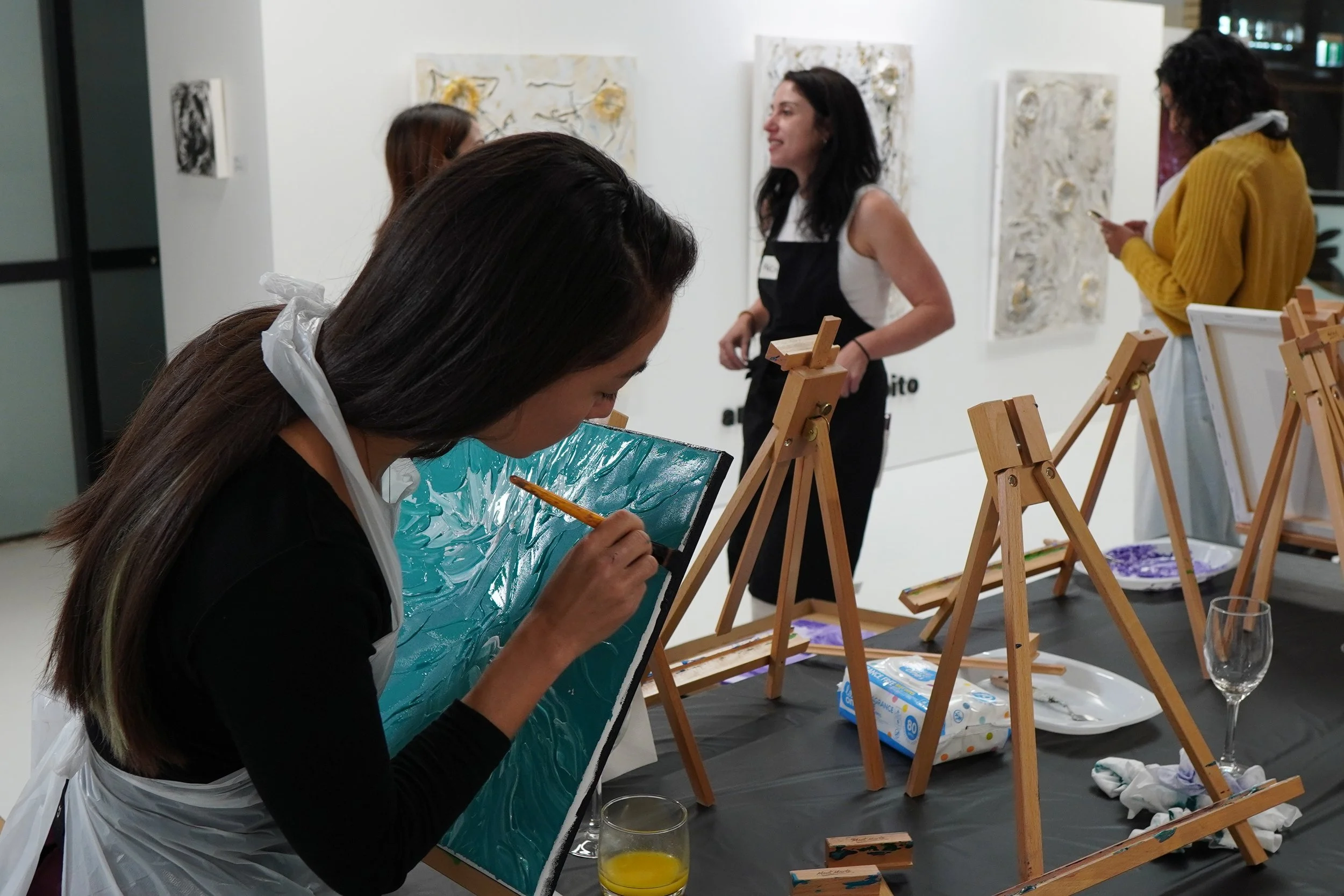 This past weekend, I facilitated a monochrome workshop in at the Romulus Folio Gallery in South Melbourne, where each participant chose one colour to explore. Aside from one participant who preferred to work with two colours, we worked only with that colour and white — no brushes, just palette knives and feeling. It wasn’t about aesthetics. It was about listening. Letting movement come from the body. Letting stillness be part of the painting too. And the aesthetic found it’s place organically from there.